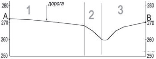 На профиле стрелкой укажите положение дороги.