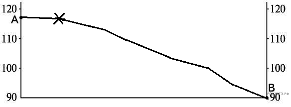 Чтобы определить азимут движения, необходимо провести линию, показывающую направление на север, из пункта начала движения (геодезического знака 117,5), а затем соединить объекты начала и конца движения прямой линией (от геодезического знака 117,5 на дом лесника). Полученный угол измеряем по часовой стрелке совмещением ноля транспортира с направлением на север.