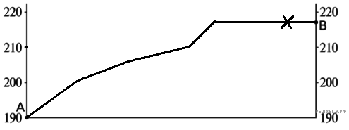 Версия для печати и копирования в MS WordПостройте профиль рельефа местности по линии А−В, используя горизонтальный масштаб (в 1 см — 50 м) и вертикальный масштаб (в 1 см — 10 м). Укажите на профиле знаком «X» положение геодезического знака 214,0.