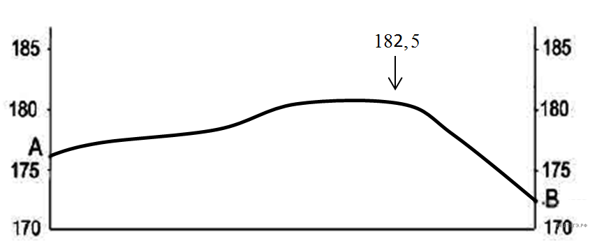 На профиле стрелкой укажите положение геодезического знака 182,5.