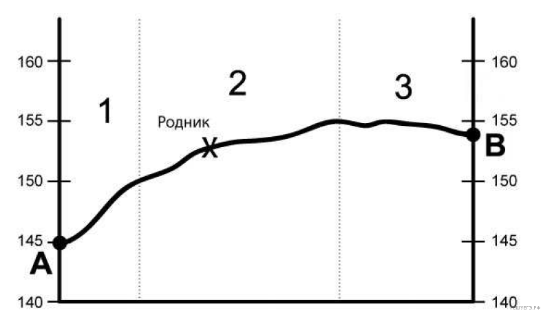 Укажите на профиле знаком «Х» положение родника.