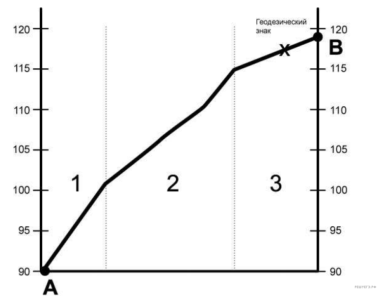 Укажите на профиле знаком «Х» геодезический знак.