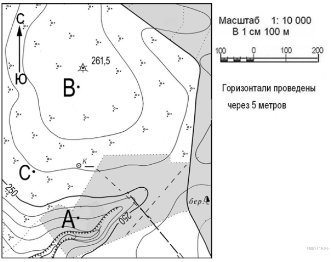 Определите по карте азимут от точки С на колодец. Ответ запишите в виде числа.