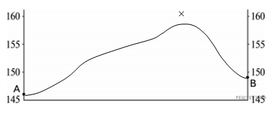 Постройте профиль рельефа местности по линии А−В. Для этого перенесите основу для построения профиля на бланк ответов № 2, используя горизонтальный масштаб (в 1 см — 50 м) и вертикальный масштаб (в 1 см — 5 м). Укажите на профиле знаком «Х» положение точки с высотой 158,0.
