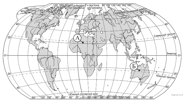 Определите, в какой из точек, обозначенных буквами на карте мира, 5 марта солнце будет находиться выше всего над горизонтом в 16 часов по солнечному времени Гринвичского меридиана. Запишите обоснование Вашего ответа.