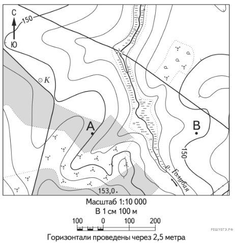 Постройте профиль рельефа местности по линии А−В, используя горизонтальный масштаб
