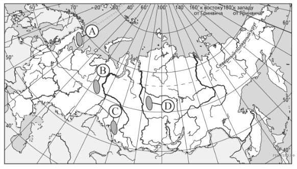 Какая из территорий, обозначенных буквами на карте России, имеет наибольшую среднюю плотность населения?