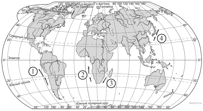 Установите соответствие между океаническим течением и его местоположением на карте.