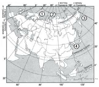 Установите соответствие между морем и его расположением на карте, обозначенным цифрой.