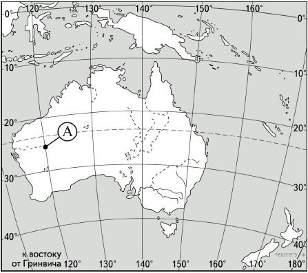 Какие географические координаты имеет точка, обозначенная на карте Австралии буквой А?
