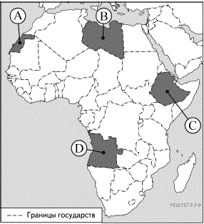 Какой буквой на карте Африки обозначена территория государства Ангола?