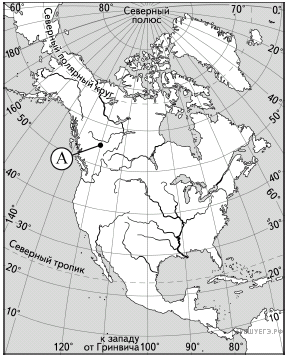 Какие географические координаты имеет точка, обозначенная на карте Северной Америки буквой А?