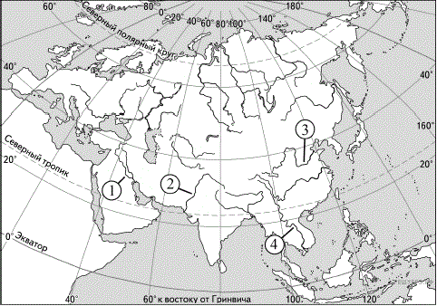 Установите соответствие между рекой и её обозначением на карте Евразии.
