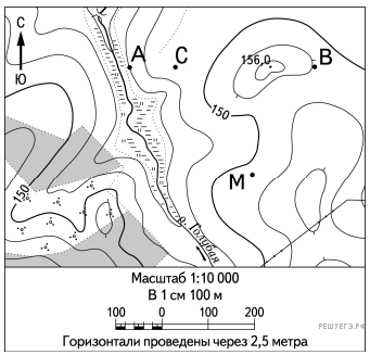 В бланке ответов № 2 укажите номер задания и постройте профиль рельефа местности по линии А−В. При построении основы профиля используйте горизонтальный масштаб