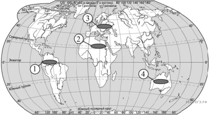 В пунктах, обозначенных на рисунке цифрами, одновременно проводятся измерения атмосферного давления. Расположите эти пункты в порядке повышения в них атмосферного давления (от наиболее низкого к наиболее высокому).