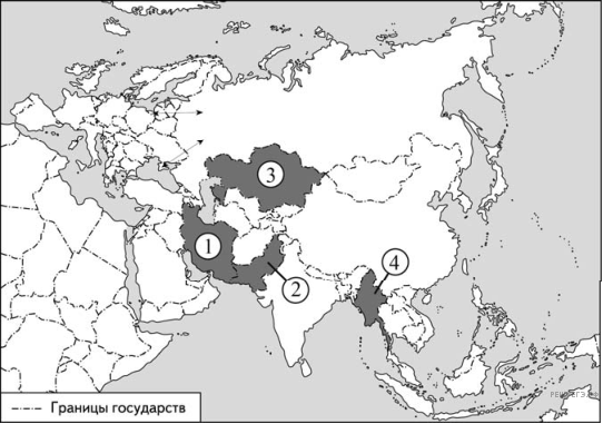 Какой цифрой на карте Евразии обозначена территория государства Пакистан?