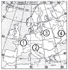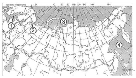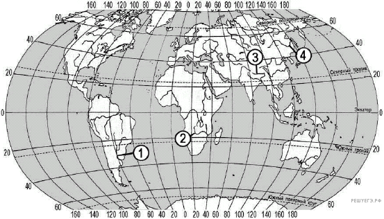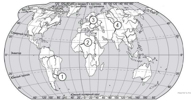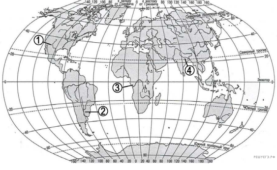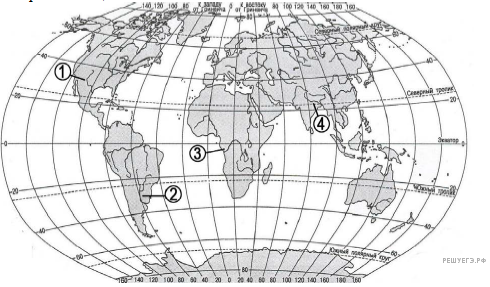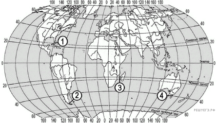 Установите соответствие между частью Мирового океана и цифрой, которой она обозначена на карте.