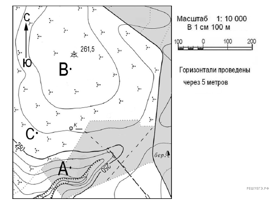 За­да­ние вы­пол­ня­ет­ся с ис­поль­зо­ва­ни­ем при­ведённого ниже фраг­мен­та то­по­гра­фи­че­ской карты.