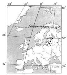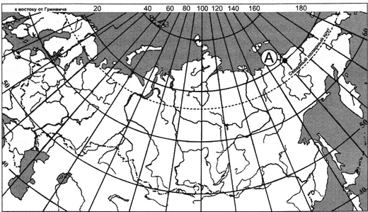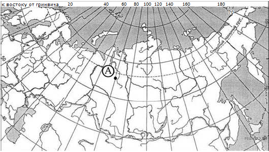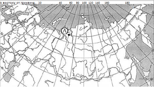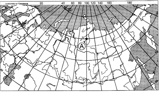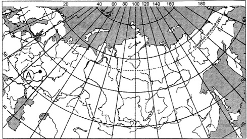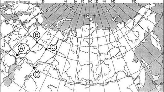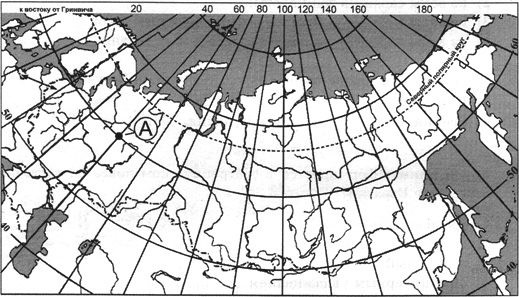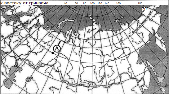 Какие географические координаты имеет точка, обозначенная на карте России буквой А?