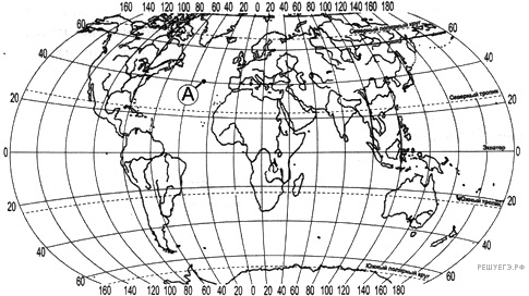 Какие географические координаты имеет точка, обозначенная на карте буквой А?
