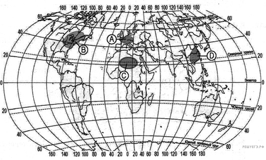 Какая из территорий, обозначенных буквами на карте мира, имеет наибольшую среднюю плотность населения?