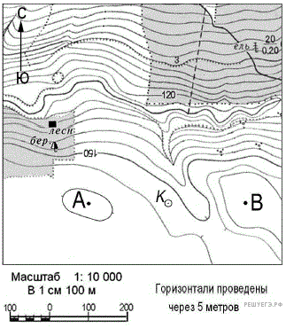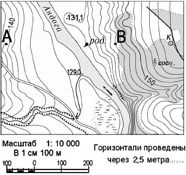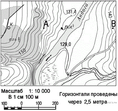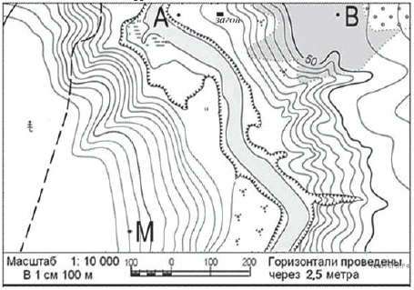 Ознакомьтесь с фрагментом топографической карты, показанным на рисунке.