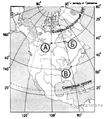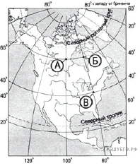 | А | 50° с. ш. | 70° з. д. |