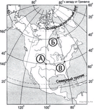 Определите, в какой из этих точек 15 июня солнце будет находиться ниже всего над горизонтом в 7 часов утра по солнечному времени Гринвичского меридиана. Запишите обоснование Вашего ответа.
