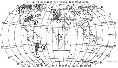 В пределах какой из территорий, обозначенных цифрами на карте, средняя плотность населения наименьшая?