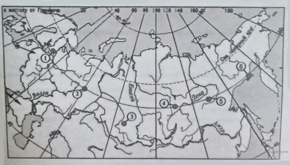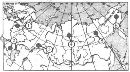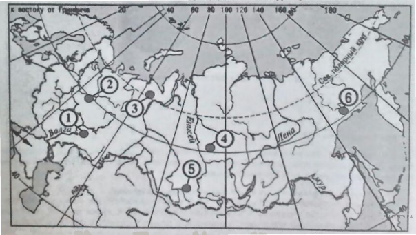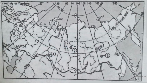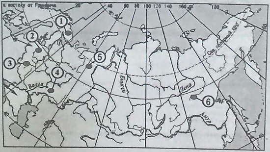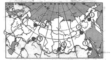 Какие три из обозначенных на карте России территории имеют наибольшую среднюю плотность населения? Запишите в ответ цифры в порядке возрастания номеров ответа, под которыми указаны эти территории.