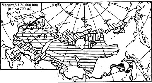 Из какой природной зоны в какую переместится путешественник, совершивший перелет по маршруту А-В, показанному на карте России?