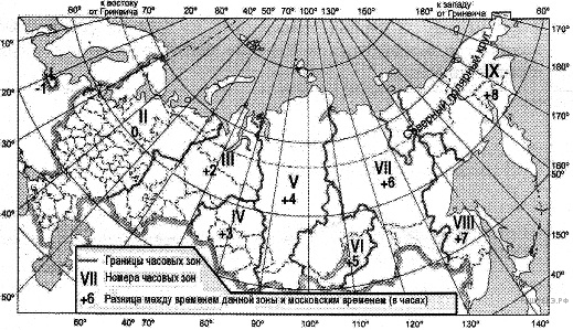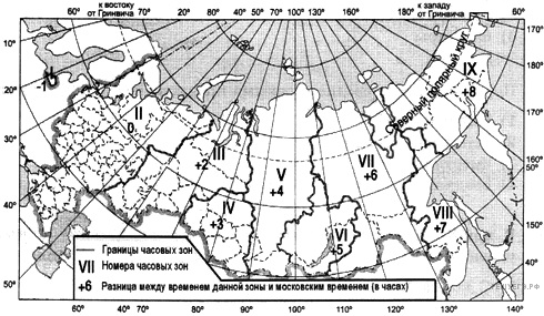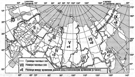 После отмены сезонного перевода часов в России московское время отличается от времени, действующего на территории Великобритании: летом на 3 часа, а зимой — на 4. С помощью карты «Часовые зоны России» определите, сколько времени будет в Иркутске (VI часовая зона) 1 декабря, когда в Лондоне полдень.