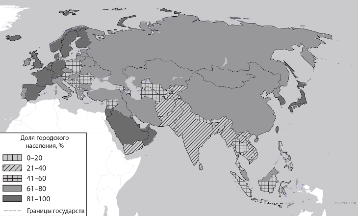Расположите перечисленные страны и территории в порядке возрастания в них доли городского населения в общей численности населения, начиная со страны с наименьшим значением этого показателя.
