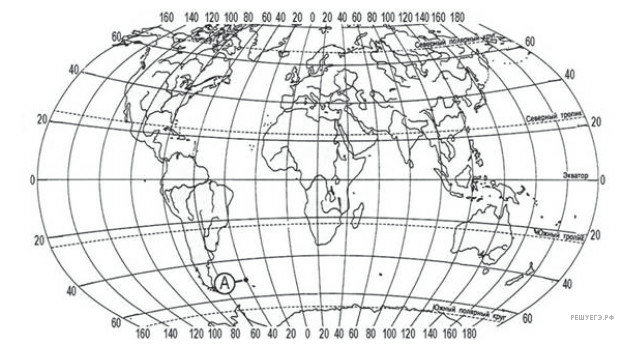Какие географические координаты имеет точка, обозначенная на карте буквой А?