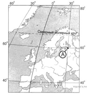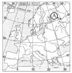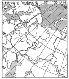 Какие географические координаты имеет точка, обозначенная на карте европейской части России буквой А?