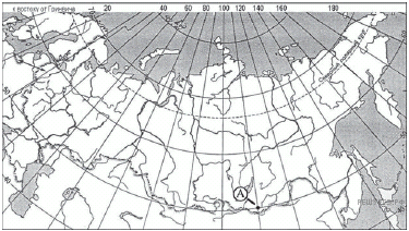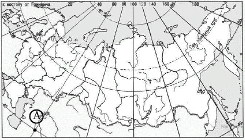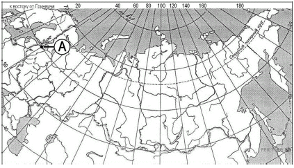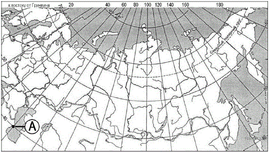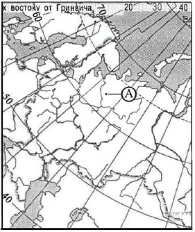 Какие географические координаты имеет точка, обозначенная на фрагменте карты России буквой А?