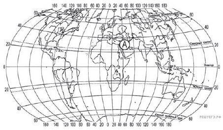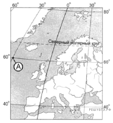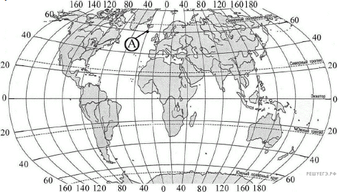 Какие географические координаты имеет точка, обозначенная на карте буквой А?