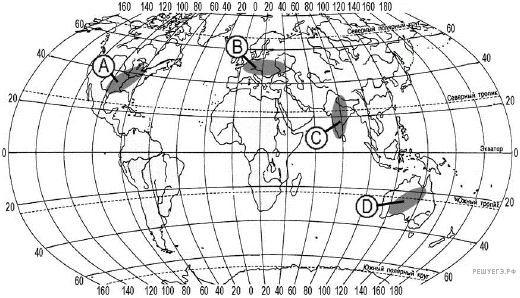Какая из территорий, обозначенных буквами на карте, имеет наименьшую среднюю плотность населения?