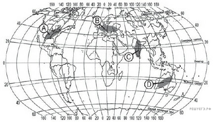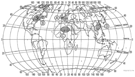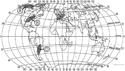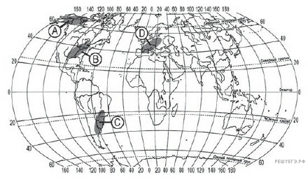 Какая из территорий, обозначенных буквами на карте, имеет наибольшую среднюю плотность населения?